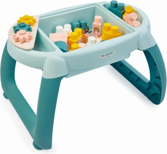 Stolek pro děti s vloženými kostičkami, ideální pro rozvoj jemné motoriky, rozpoznávání barev a tvarů. Obsahuje 22 kusů příslušenství.