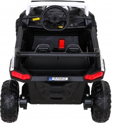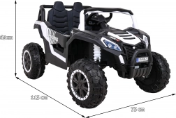Buggy UTV 2000M je výkonné dětské auto na baterii navržené pro zábavu venku i na dvoře. Díky čtyřem motorům a napájení 12 V poskytuje jistý záběr, plynulý start bez cukání a stabilitu i na nerovném povrchu. Velká pěnová kola EVA výborně tlumí vibrace a zadní tlumiče zvyšují komfort jízdy.