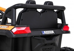 Objevte zábavu v terénu s elektrickým buggy UTV 2000M Racing. Díky čtyřem motorům 45 W, silné baterii 12 V 10 Ah a měkkým EVA kolům zvládne nerovnosti, trávu i dlažbu. Plynulý rozjezd a dvě rychlosti zajišťují pohodlné a bezpečné ovládání, zatímco LED světlomety přidávají na atraktivitě i viditelnosti.