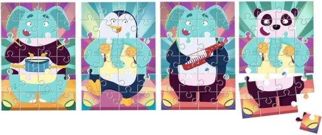 Užijte si chytré skládání i zábavné míchání dílků: v balení najdete 3 dětská puzzle, každé s 24 dílky. Díly lze mezi všemi třemi obrázky libovolně kombinovat a vytvářet tak legrační zvířátka. Rozměr složeného obrázku je cca 18 × 26 cm.
