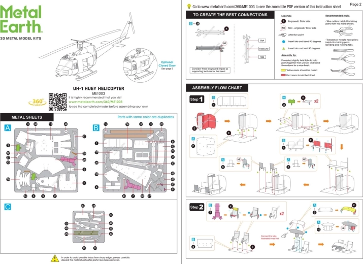 Užijte si chytrou zábavu se stavebnicí METAL EARTH a sestavte si legendární záchranný vrtulník UH-1 HUEY. Jednotlivé díly vyjmete z kovových plátků a snadno je spojíte pomocí zámků – bez lepidla. Díky jemnému laserovému gravírování má hotový model realistický vzhled, který ocení sběratelé i fanoušci letectví.