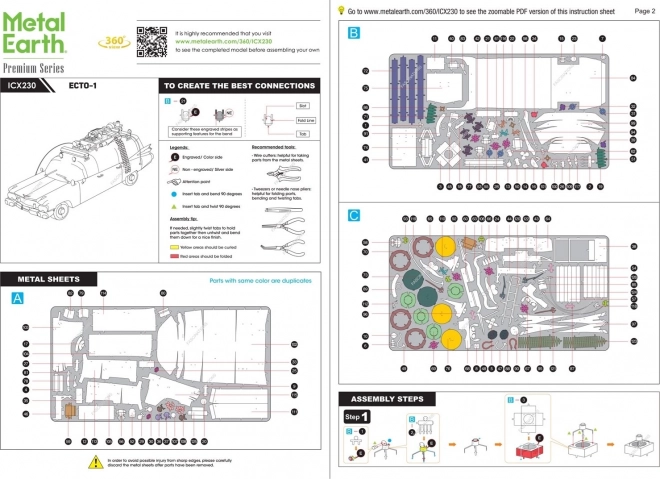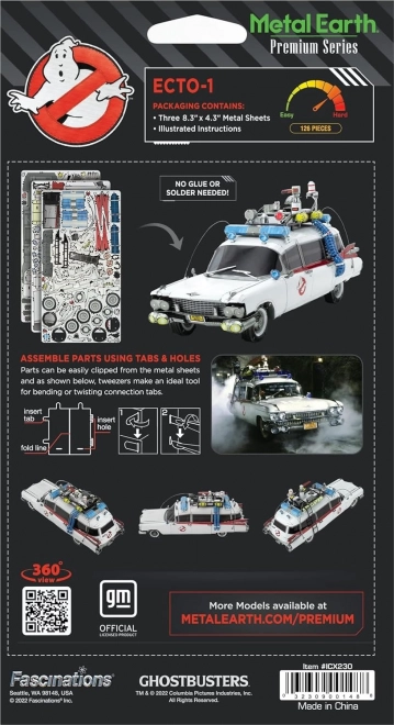 Prémiová kovová 3D skládačka Metal Earth věrně zachycuje ikonický filmový automobil GHOSTBUSTERS Ecto-1 v mimořádně jemných detailech. Díly jsou precizně vysekány z ocelových plátků a díky laserovému gravírování vynikají ostrými liniemi a autentickými prvky karoserie i střechy s vybavením.