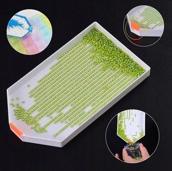 - Plátno s předtištěným obrázkem a lepivou vrstvou, aplikační pero, miska, vosk, sada barevných kamínků, legenda symbolů