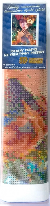 Diamantové malování představuje kreativní zábavu pro každého. Pomocí aplikačního pera nanášíte kamínek za kamínkem na označená místa na plátně. Sada obsahuje vše potřebné pro okamžité tvoření: plátno, aplikační pero, kamínky, misku a vosk.