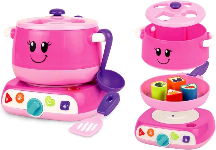 Kouzelný sladký hrnec je ideální pro malé kuchaře, kteří milují hru na domácnost a napodobování rolí. Usměvavý hrnec s odnímatelnou pánvičkou, lopatkou a lžící nabízí spoustu interaktivní zábavy – od tlačítek s melodiemi po otočný přepínač a světelnou signalizaci konce „vaření“. Při hraní mluví polsky, díky čemuž se děti učí zdvořilostním frázím a správným návykům u stolu.