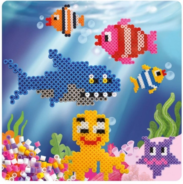 S touto kompletní sadou zažehlovacích korálků vytvoříte originální podmořské motivy nebo vlastní návrhy. Stačí vyskládat korálky na podložku podle předlohy či fantazie, překrýt papírem na pečení a krátce přežehlit. Výsledkem jsou pevné obrázky, ozdoby či přívěsky, které potěší malé i velké tvůrce.