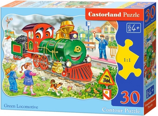 Barevné dětské puzzle s motivem zelené lokomotivy nabízí 30 dílků a po složení vytvoří obrázek o rozměru 32 × 23 cm. Ideální pro první skládání, s kvalitním zpracováním a přitažlivými barvami, které podporují sou koncentraci, trpělivost a rozvoj představivosti.