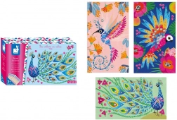 Objevte kouzlo třpytivého tvoření se sadou JANOD Atelier. Děti jednoduše nalepují barevné flitry ve tvaru „diamantů“ na předtištěné ilustrace a krok za krokem vytvářejí zářivé obrázky s motivem ptáčka. Ideální volba pro smysluplnou zábavu bez nepořádku.