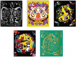 - 5 škrabacích karet různých zvířátek, dřívko na vyškrabávání
