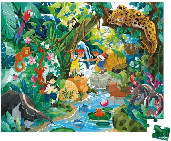 Stylové dětské puzzle v pevném kartonovém kufříku přenese malé dobrodruhy do tajemné džungle, kde mohou objevovat zvířata a hledat skrytý chrám. Díky 100 dílkům je skládání zábavné a přiměřeně náročné pro děti, které už zvládají větší obrázky.