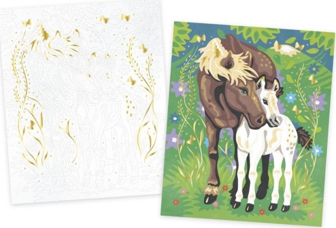 Tato kreativní sada JANOD přináší oblíbenou techniku malování podle čísel, která připomíná omalovánky, ale s profesionálním výsledkem. Na plátně jsou očíslované plošky – každé číslo odpovídá konkrétní barvě, takže se stačí držet rozpisu a sledovat, jak před vašima očima vzniká barevný obraz koní.