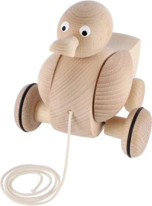 Tahací kačer z přírodního dřeva 17 cm. Při jízdě hýbe hlavou, podporuje motoriku a rovnováhu. Odolné provedení, vhodné pro děti od 3 let.