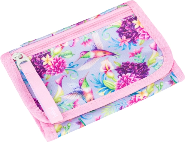 Peněženka se pyšní krásným vzorem květin a kolibříků, který přitáhne pozornost a dodá styl každému outfitu.