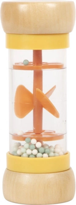 Užijte si uklidňující zvuk jemného deště s dešťovou holí Small Foot, která rozvíjí sluchové i vizuální vnímání dětí. Díky průhlednému tělu s kuličkami a rotující vrtulkou zaujme na první pohled, slouží jako chrastítko i rytmická hračka a je snadno uchopitelná do drobných ruček. Ideální na cesty, vhodná od 6 měsíců. Výška 14 cm, Ø 5 cm; materiál: dřevo a plast.
