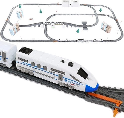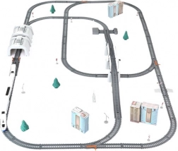 86 ELEMENTŮ - Sada se skládá z 86 prvků, které lze uspořádat podle vlastních představ. Sada obsahuje koleje, vláček, vagónky, padací most, sadu stromů a značek.
