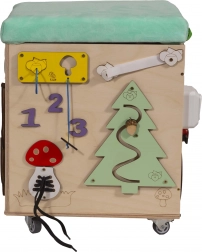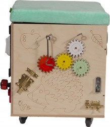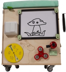 Ozubená kolečka, fidget spinner, zvonek, zipy, přezky, šněrování či háčky podporují koordinaci, soustředění a logické myšlení zábavnou formou.