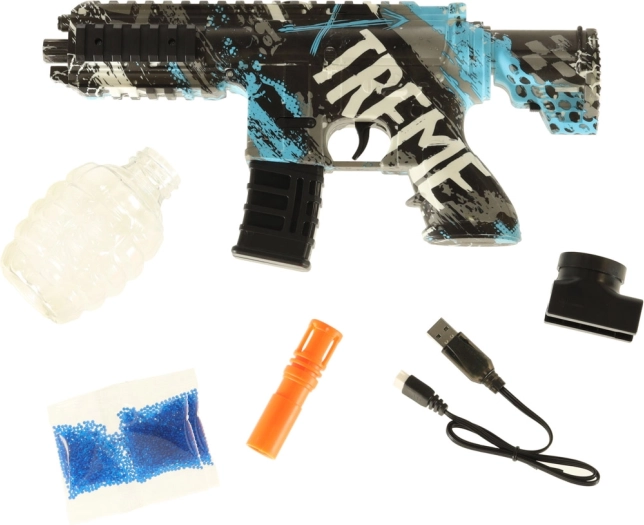 Hydrogelové kuličky o průměru 7–8 mm stačí před použitím namočit na několik hodin. Po zásahu se rozpadnou, takže hra je zábavná a úklid minimální. V balení najdete vše potřebné – zásobník, tlumič, USB kabel i startovní balení kuliček.