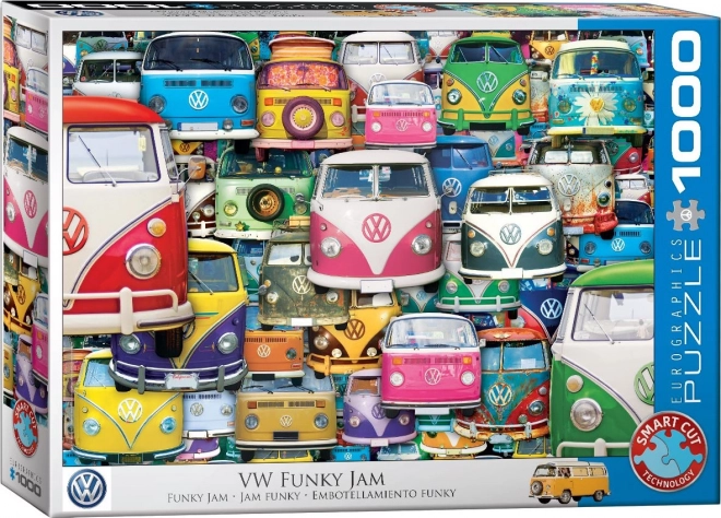 Objevte výzvu, která vás pohltí: puzzle EUROGRAPHICS s motivem Volkswagen Bus: Funky Jam přináší detailní ilustraci a netradiční tvary dílků, jež narušují standardní mřížku. Každý dílek přesně zapadá, ale jeho neobvyklé tvary zvyšují napětí a radost z každého správného spojení.