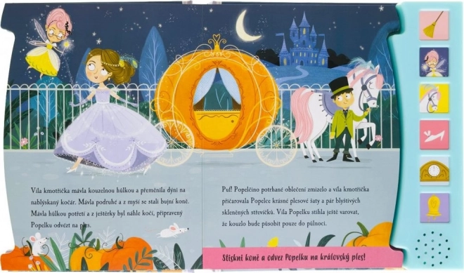 Legendární příběh o Popelce zaujme malé čtenáře díky nápaditým zvukům a působivým ilustracím. Děti mohou během čtení stisknout tlačítko a přenést se na královský ples, setkat se s dobrou vílou a znovu prožít kouzelnou proměnu.
