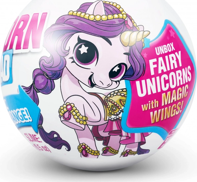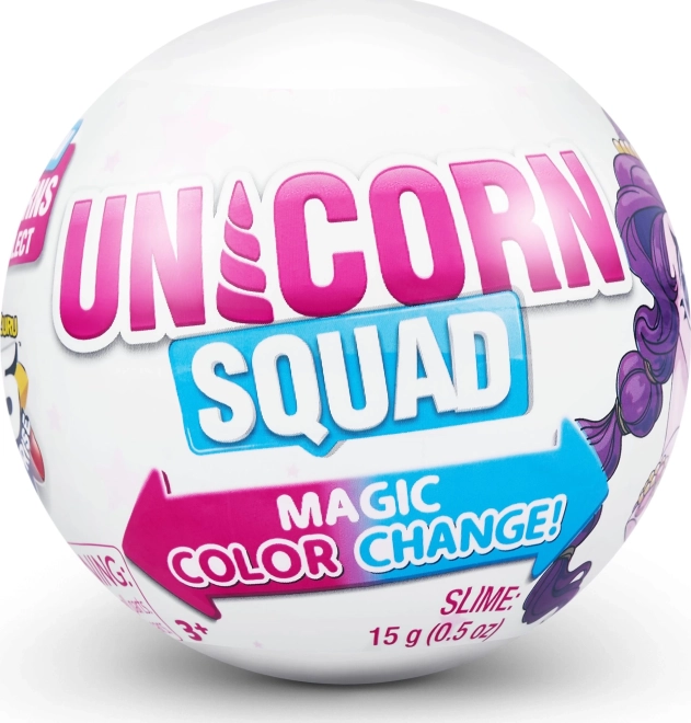 Obsah balení zahrnuje: postavičku jednorožce, oblečky, botičky, doplňky, sliz, samolepky a opakovaně použitelnou úložnou kapsli.