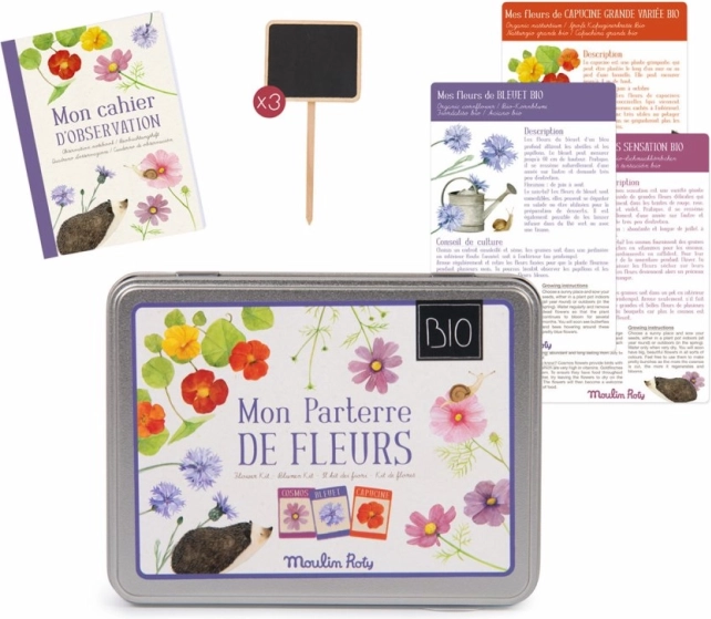 Objevte radost z pěstování vlastní zahrádky s touto nádhernou sadou semínek květin od Moulin Roty. Sada obsahuje: