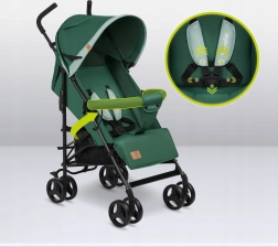 Kočárek obsahuje 5bodový bezpečnostní pás a blokaci proti náhodnému složení, což zajišťuje bezpečné používání.