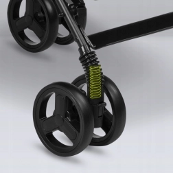 Díky odpruženým kolům a brzdě ovládané jednou nohou je zajištěna plynulá jízda a snadné ovládání kočárku.