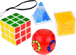 Sada obsahuje čtyři unikátní hračky, které zlepšují soustředění a motorické dovednosti rukou. Ideální pro relaxaci a cvičení logického myšlení.