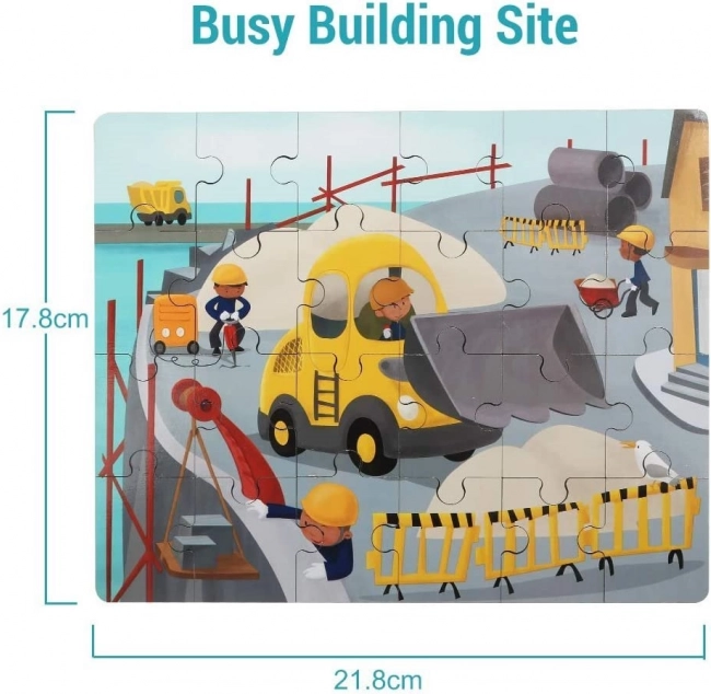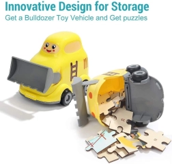 Objevte chytrou hračku, která spojuje radost z hraní s učením. Dřevěné puzzle s motivem dopravních prostředků (staveniště) je schované přímo v plastovém buldozeru. Ten má hladké, bezpečné zpracování, kolečka pro jízdu a otevírací spodní víko, do kterého děti pohodlně uloží puzzle nebo své poklady.
