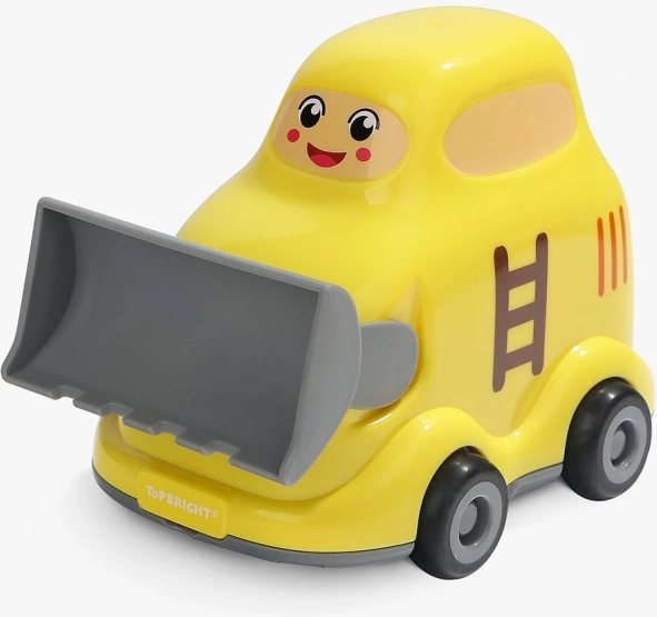 Buldozer z odolného plastu má hladké hrany, jezdí na kolečkách a nabízí praktické otevírací víko pro ukládání dílků nebo drobných pokladů.