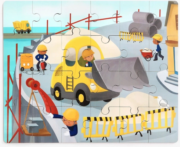 Složte obrázek a pak si užijte spoustu zábavy s plastovým buldozerem. Děti procvičí logiku při skládání a fantazii při jízdě vozidla.