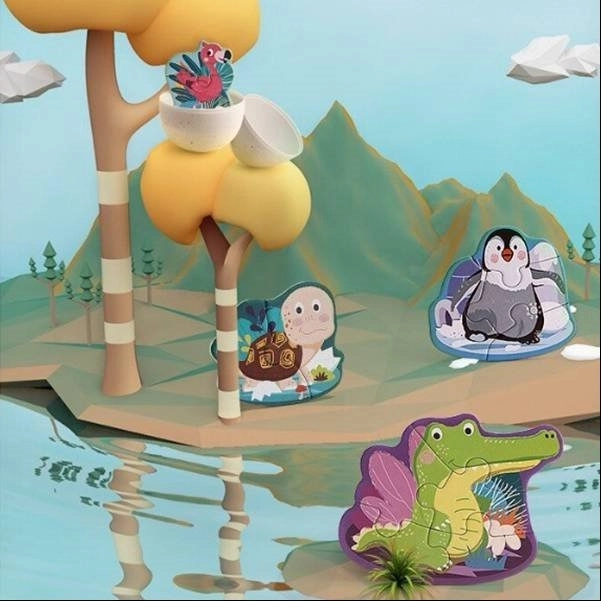 Tato hravá sada obsahuje 4 zvířecí puzzle s různou obtížností (2, 3, 4 a 5 dílků), takže se dokonale přizpůsobí tempu vašeho dítěte. Díly jsou velké, odolné a příjemné do ručky – ideální pro první skládání.