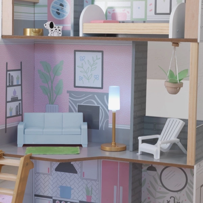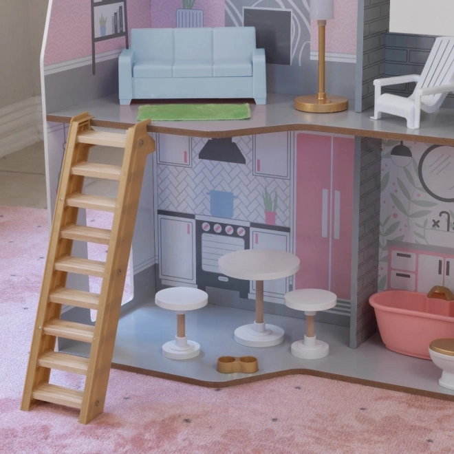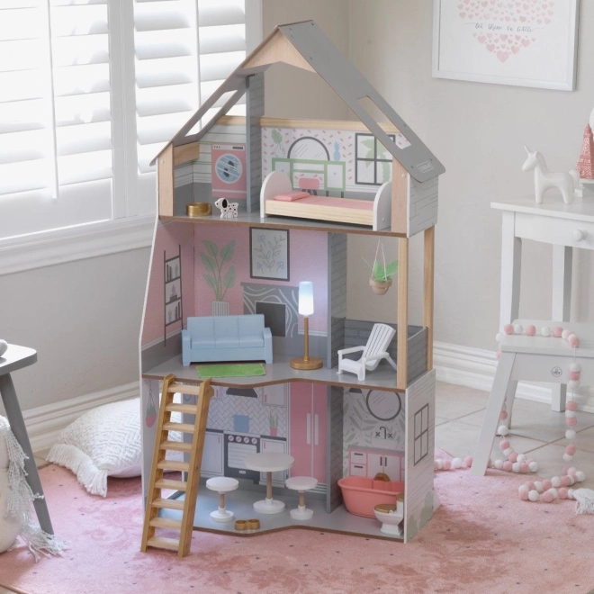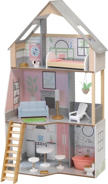 Dřevěný domeček pro panenky KidKraft Alina přináší dětem realistické prostředí pro rozvoj fantazie. Tři promyšlená podlaží zahrnují prostornou kuchyni s jídelním koutem, obývací pokoj s verandou, útulné podkroví s ložnicí a druhou koupelnu. Díky štíhlému půdorysu se skvěle hodí i do menších dětských pokojů.