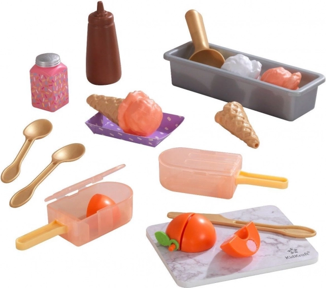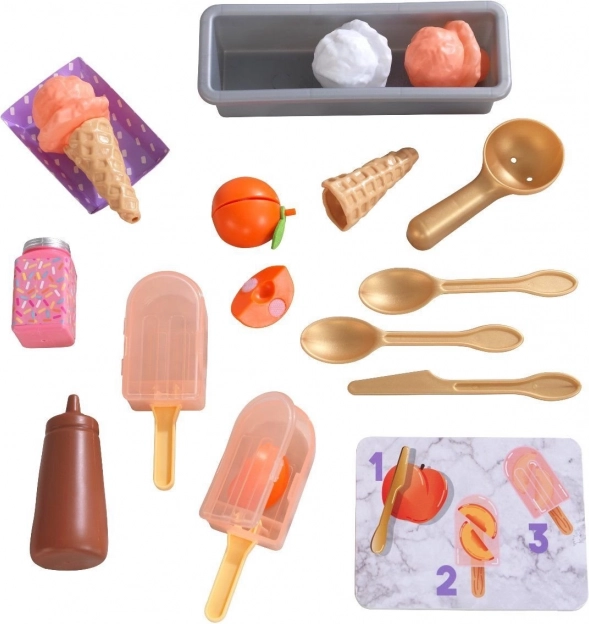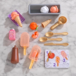 Letní dobrota po celý rok! Sada KidKraft Create & Cook broskvové nanuky přináší dětem realistickou hru na přípravu dezertů – od krájení ovoce až po zdobení čokoládovou omáčkou. Průhledné formičky na nanuky umožní dětem vidět, jak „ingredience“ vypadají uvnitř, a zmrzlinové kuličky do kornoutů zase potěší malé cukráře.