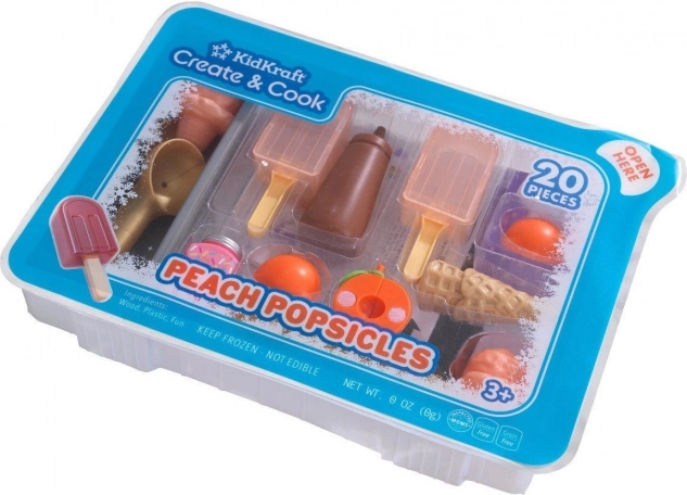 Objevte zábavu při hraní na kuchaře se sadou KidKraft Create & Cook broskvové nanuky. Děti si mohou vyrábět vlastní nanuky a zmrzlinové kornouty, krájet plátky broskví, přidávat toppingy a servírovat jako v opravdové cukrárně. Set s 20 dílky podporuje kreativitu, jemnou motoriku a rolové hry, ideální pro děti od 3 let.