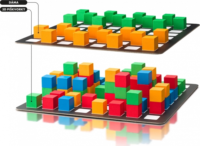 Soubor 3D her nabízí šest různých společenských her pro 2 až 4 hráče s dřevěnými 3D krychličkami. Užijte si strategické výzvy a zábavu s přáteli nebo rodinou.