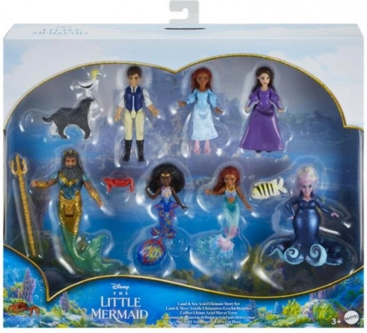 Tato kouzelná sada panenek ze země a moře přináší dětem možnost znovu prožít dobrodružství z filmu Disney Malá mořská víla. Sada obsahuje figurky Ariel, jejího otce krále Tritona, prince Erika a další přátelé i postavy z pohádkového světa.