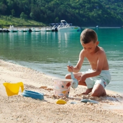Mořský motiv podporuje fantazii a hravou kreativitu. Sada je navržena jako praktická výbava pro každodenní letní vyžití a společné chvíle venku.