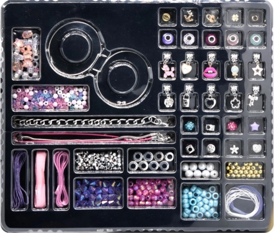 Vytvářej jedinečné náramky přesně podle svého stylu. Tato bohatě vybavená sada nabízí spoustu přívěsků a doplňků, díky nimž snadno zkombinuješ barvy, tvary i motivy. Skvělá zábava pro začátečníky i pokročilé, která rozvíjí kreativitu a jemnou motoriku.