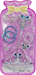 Tato princeznovská sada je perfektním doplňkem pro malé milovnice pohádek. Díky kombinaci korunky, náušnic a náramků v ladící modré barvě vykouzlí okouzlující vzhled během chvilky a podpoří kreativní hru na role.