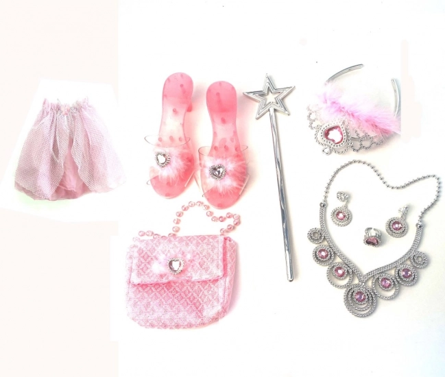 - Sukýnka, pantoflíčky, korunka, kabelka, kouzelná hůlka, šperky
