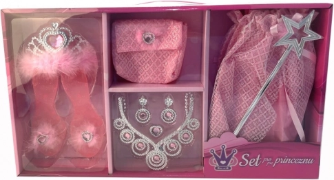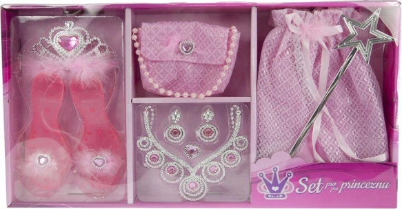 Vstup do světa pohádek s kouzelným setem pro malé princezny! Obsahuje sukýnku, pantoflíčky, korunku, kabelku, kouzelnou hůlku a šperky – vše pro okamžitou proměnu v princeznu a hodiny kreativní hry.
