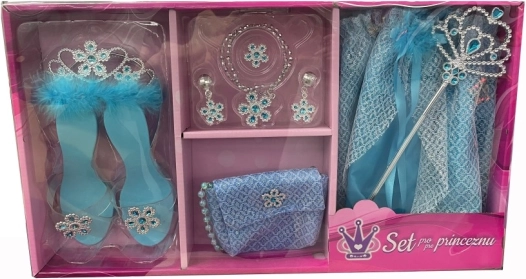 Díky sladěné modré barevnosti set snadno zkombinujete s dalšími doplňky. Skvěle se hodí jako dárek pro holčičky, které milují pohádky a převlékání.