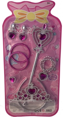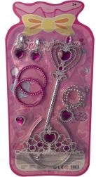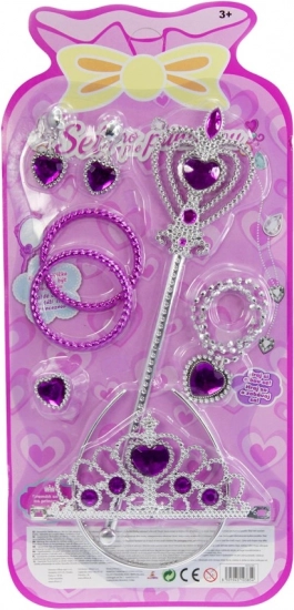Tato kouzelná sada doplňků promění každé dítě v princeznu během chvilky. Stříbrné doplňky s růžovými a fialovými kamínky ve tvaru srdce podpoří kreativní a rolovou hru a dodají každému kostýmu slavnostní vzhled.
