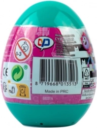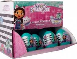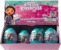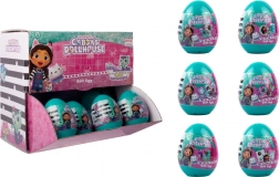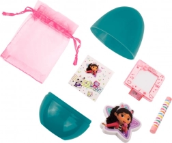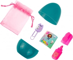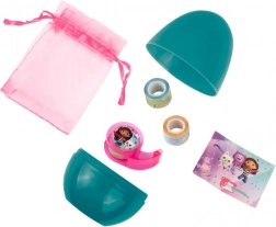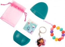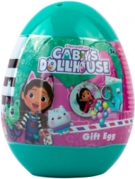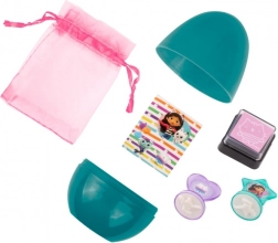 Tyrkysové vajíčko skrývá tematické překvapení z pohádkového světa Gábinčina kouzelného domečku. Děti potěší roztomilé samolepky, přívěsek na klíče, náramek, drobné razítko či dekorativní pásky a růžový sáček na uložení pokladů. Vše je laděné do veselých barev a připravené ke hře i tvoření.