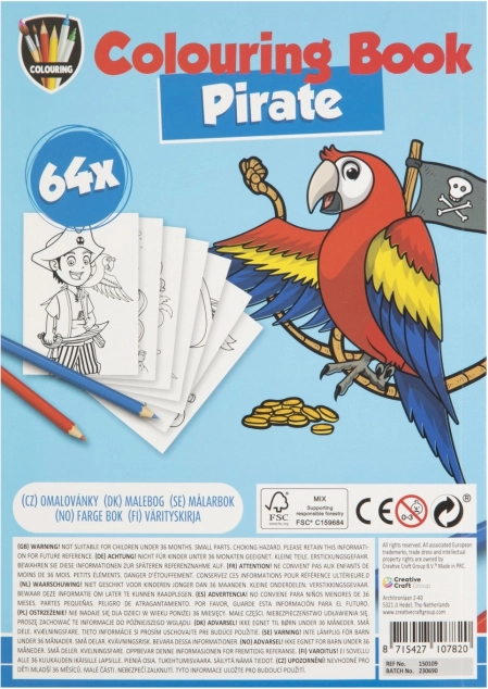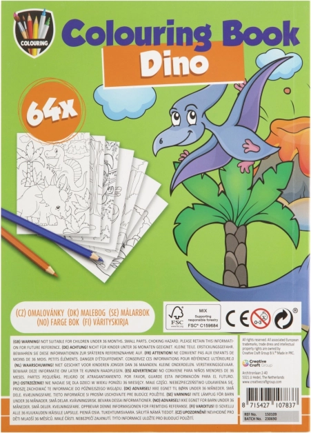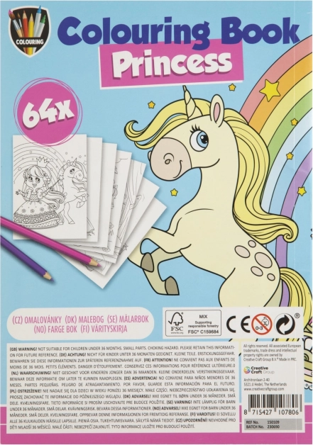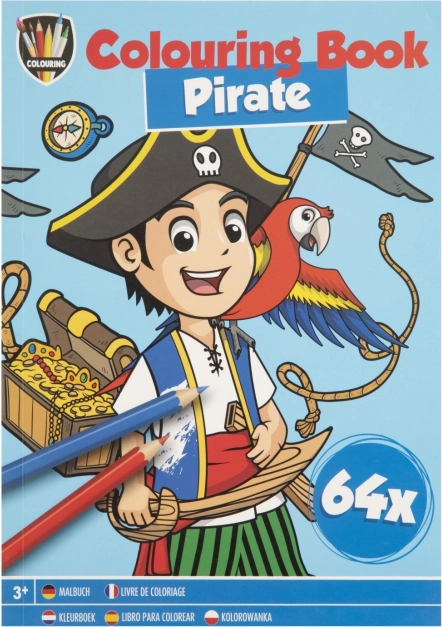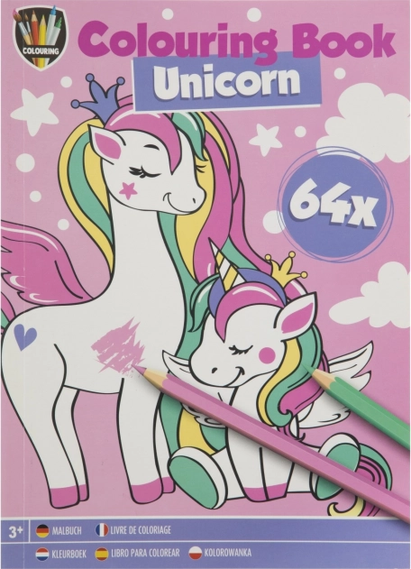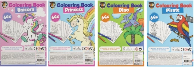 Kniha omalovánek A5 se 64 kreativními obrázky nabízí zábavu pro děti. Témata jako Jednorožec, Princezny, Dino a Piráti inspirují malé umělce.