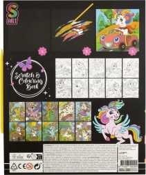 Tato kreativní sada spojuje dvě oblíbené aktivity v jednom – vyškrabování a omalovávání. Děti si mohou nejprve vyškrábat zářivé motivy a následně vybarvit omalovánky na druhé straně. Díky přiloženému plastovému peru je práce snadná a bezpečná.