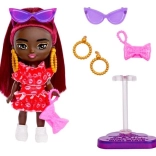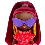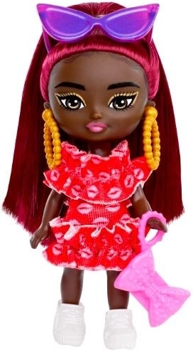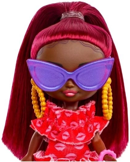 Tato mini panenka BARBIE z kolekce Extra Mini Minis okouzlí zářivým outfitem s červenými volánky, dlouhými zrzavými vlasy a výraznými doplňky, jako jsou fialové sluneční brýle, žluté kruhové náušnice a růžová kabelka. Díky kompaktní velikosti se skvěle hodí na cesty i do dětských pokojíčků.