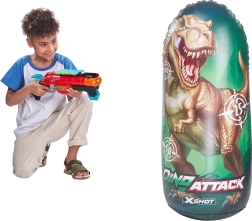 Nafukovací terč Dino Attack je navržen pro zábavnou a interaktivní hru, kde se děti mohou naučit míření a zlepšovat svou přesnost. Terč má základnu, kterou lze naplnit vodou nebo pískem, aby byl stabilní. Přátelé mohou proti sobě soutěžit, kdo zasáhne cíl lépe, nebo si zahrát na bitvu s dinosaury. Hlavním motivem je dinosaurus T-Rex, který dodává hře dobrodružnou atmosféru.