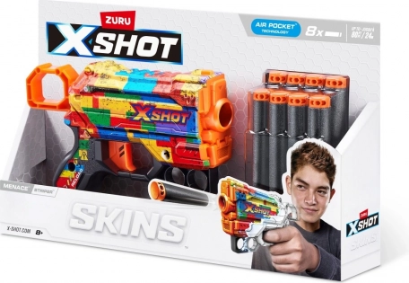 Objevte akční zábavu s blasterem X-Shot Skins Menace – malý rozměrem, velký výkonem. Díky technologii šipek s vzduchovými kapsami získáte rychlejší let, stabilní trajektorii a přesné trefy až na 27 metrů. Barevné „skins“ provedení umožňuje vyjádřit vlastní styl a odlišit se v každé bitvě.